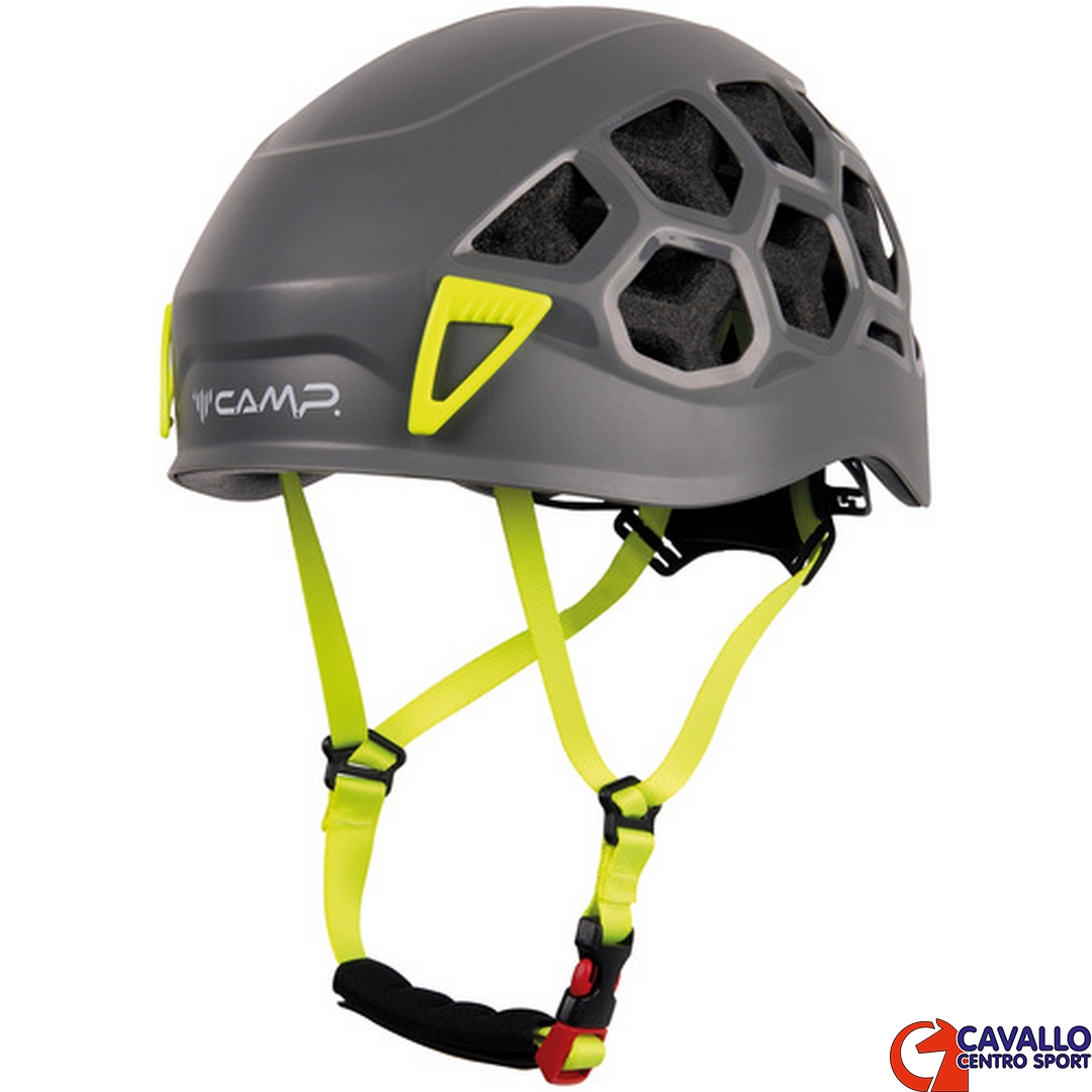 Casco di nuova generazione che combina la protezione e la robustezza dei modelli hardshell con la leggerezza e la ventilazione di quelli in-mold. Il guscio in ABS è eccezionalmente resistente, caratterizzato da una costruzione a nervatura 3D in corrispondenza delle aperture di ventilazione a nido d’ape. Sono così incrementate robustezza e rigidità. La calotta interna in EPP con top in EPS si estende su tutta la superficie del guscio esterno. Presenta aperture di ventilazione traslate che si combinano con quelle del guscio e aumenta la protezione in caso di impatti laterali. Il sistema di regolazione, dotato di comoda rotella azionabile anche con una sola mano, è basculante per essere compattato all’interno del casco riposto nello zaino. Anche il portalampada, caratterizzato da 2 clip anteriori ed elastico posteriore, è all’insegna della funzionalità: pratico e veloce, è utilizzabile a casco indossato grazie al tiretto posteriore e all’invito nella parte anteriore del guscio, tra le 2 clip.